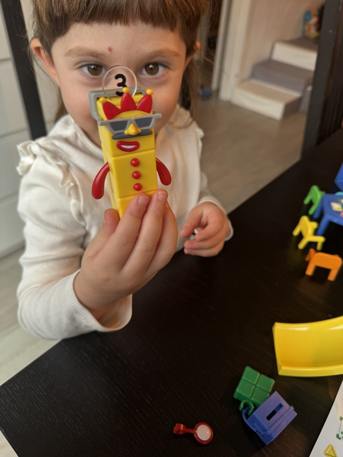 “Der er lagt op til spionleg i hovedkvarteret, med elevator og rutsjebane. Børnene hyggede sig, men savnede flere figurer, da der kun medfølger Numberblock ‘3’.”