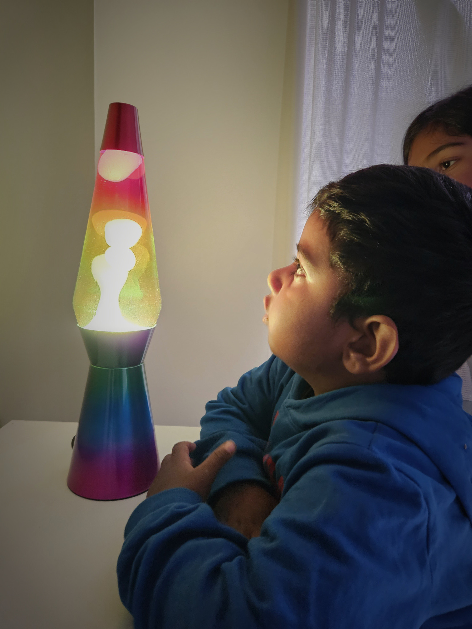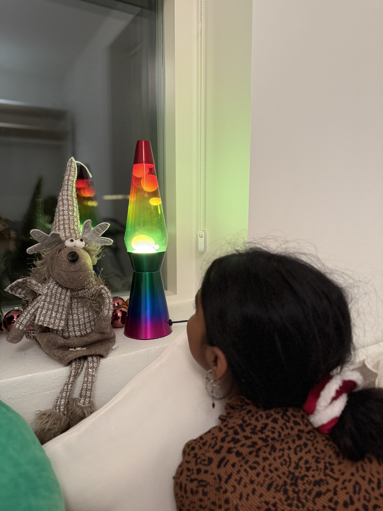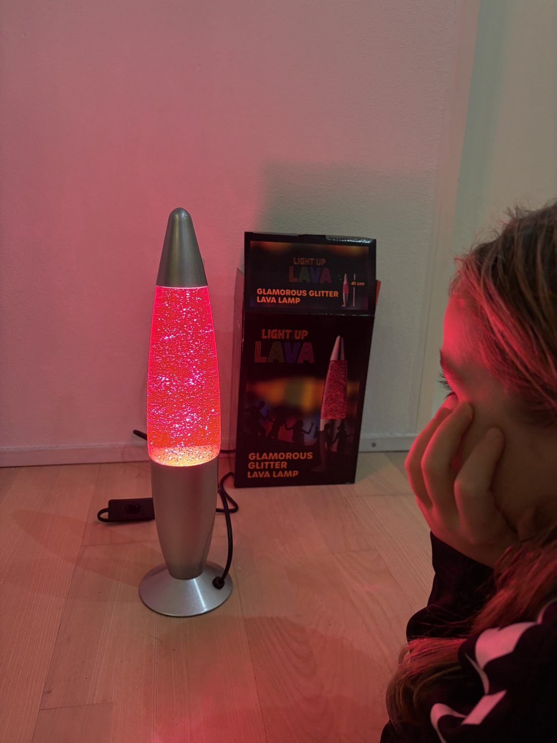 ”Lava lampen … skaber en hyggelig belysning, og når man som vores datter er lidt bange for at sove i mørke, så er den rigtig god.”