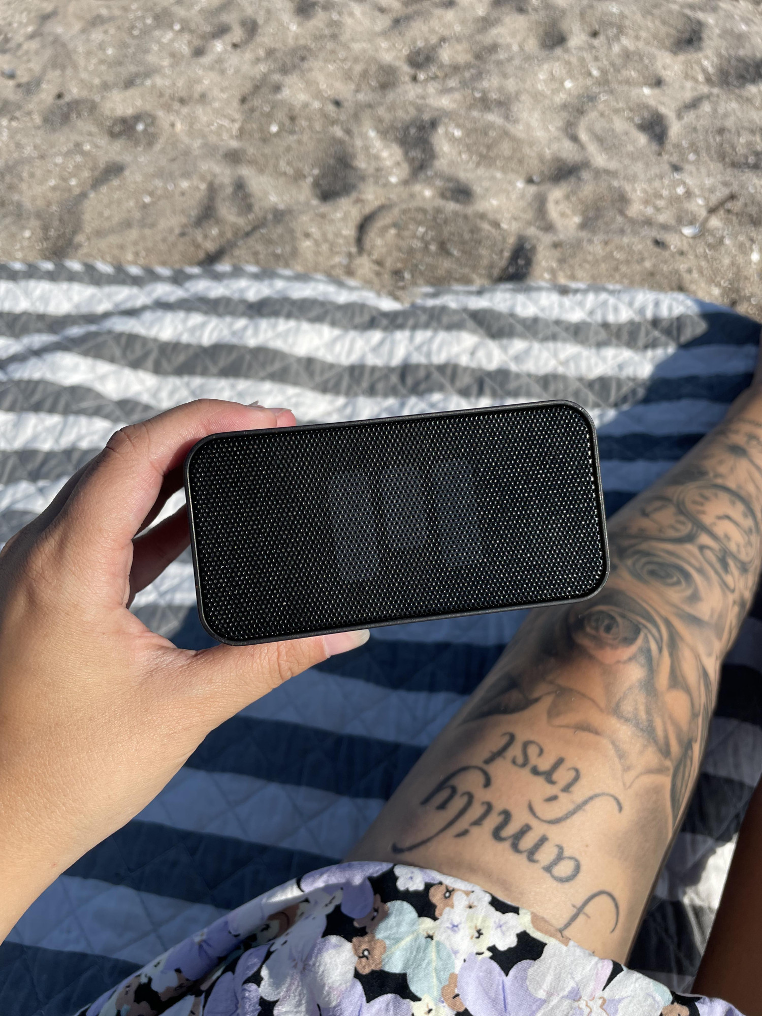 Højtaleren har været med mange gange på stranden, hvor den har spillet en masse hyggemusik.