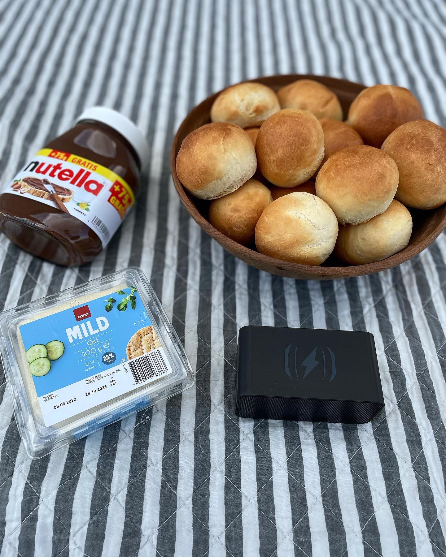 Vi har holdt picnic med højtaleren, hvor den har givet stemningsmusik.