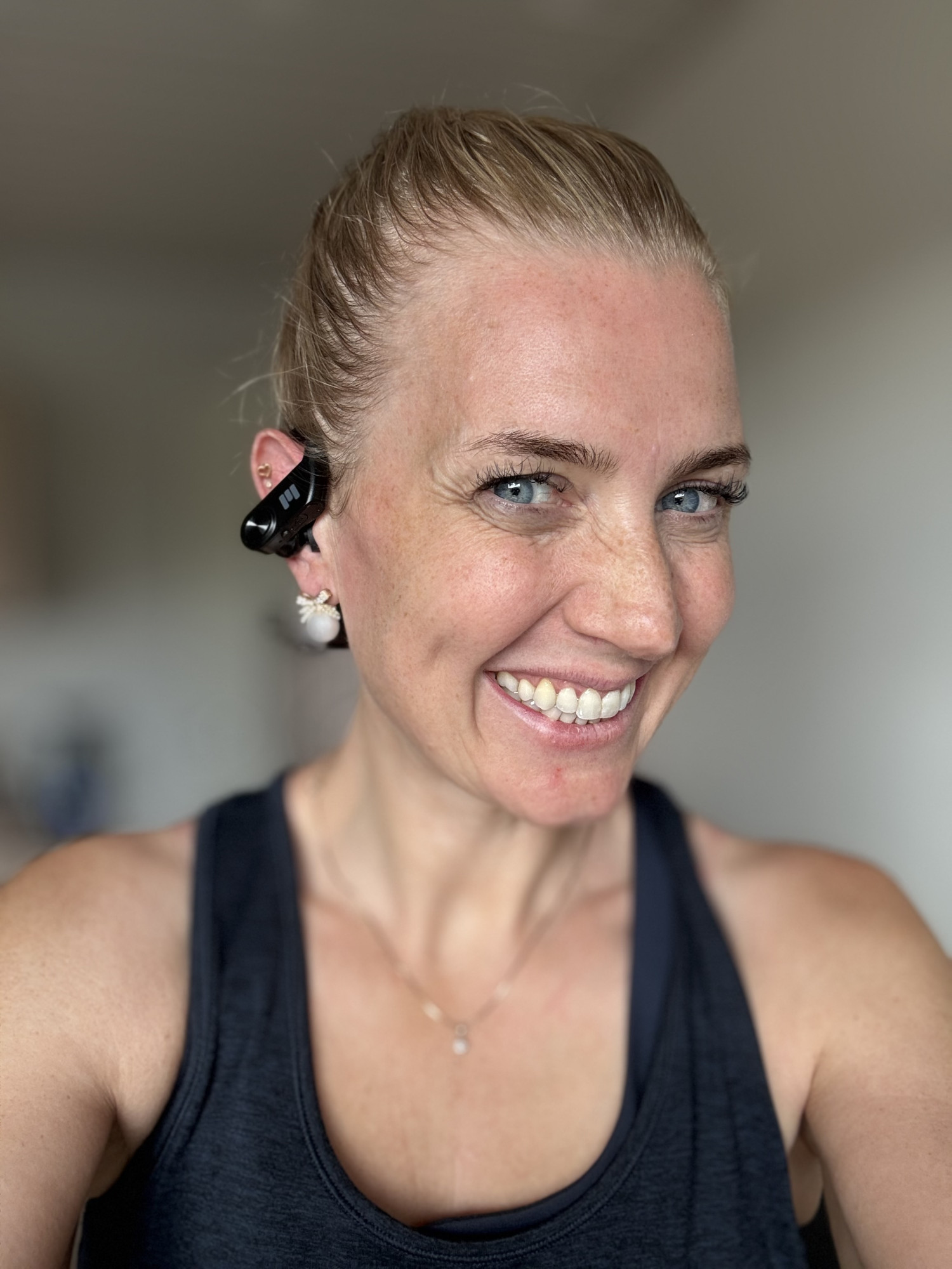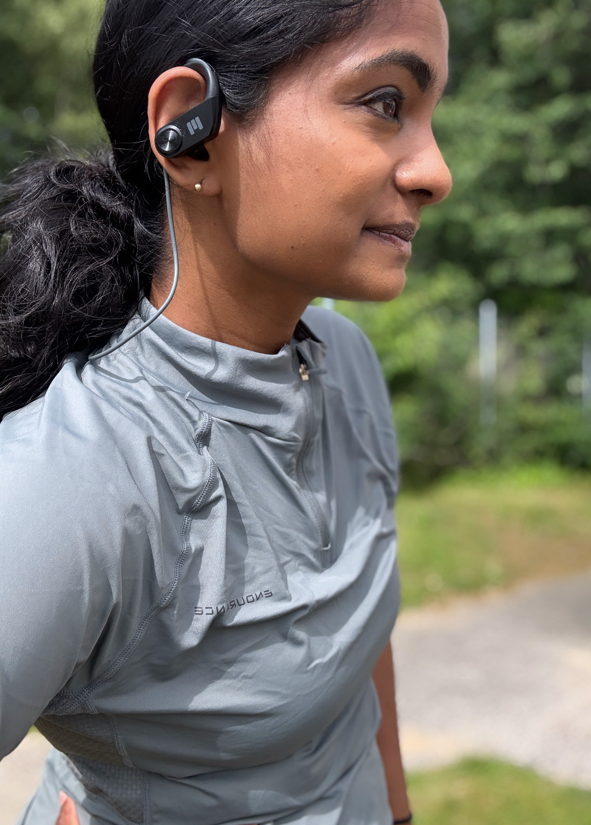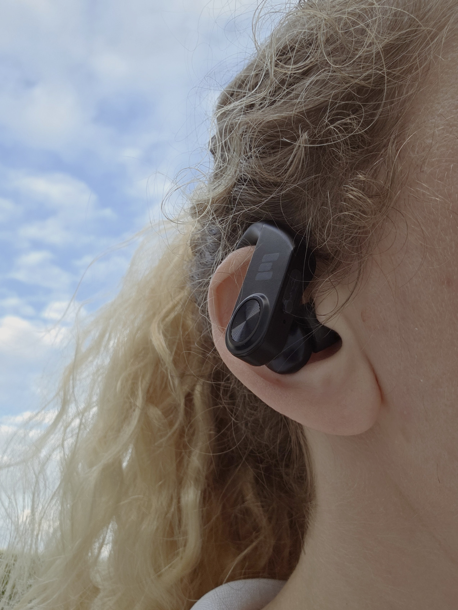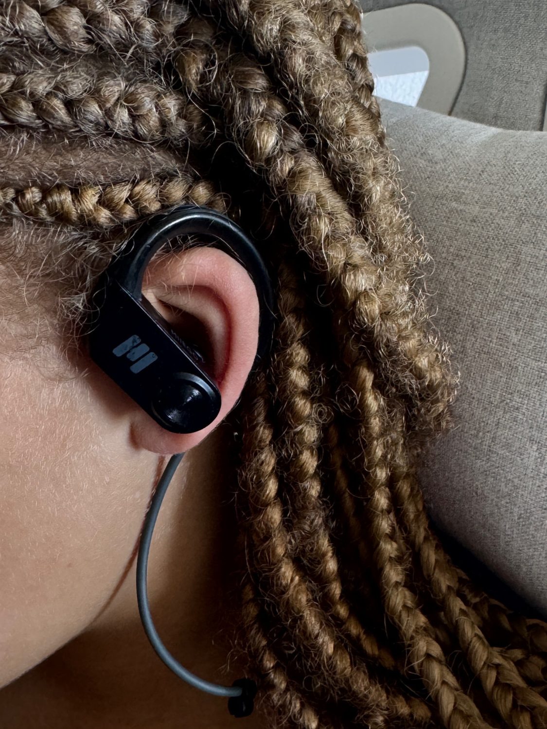 Det første, jeg lagde mærke til, var vægten – eller rettere sagt, hvor lidt de vejer. Med kun 23 gram er de så lette, at jeg flere gange har glemt, at jeg havde dem på. Den fleksible ørebøjle sidder godt uden at genere, og det ultralette kabel bag nakken gør, at man bare kan lade dem hænge om halsen, når man ikke bruger dem – uden at risikere at tabe dem.