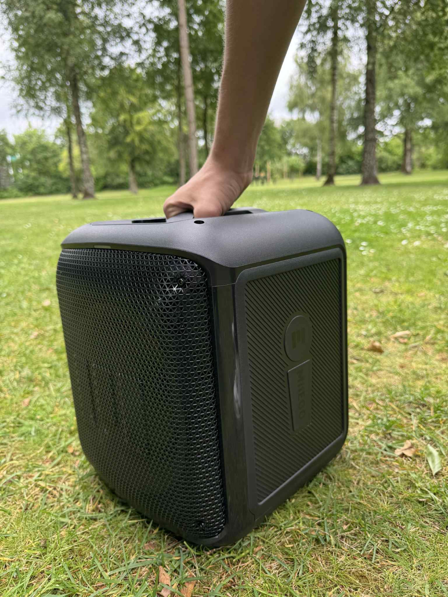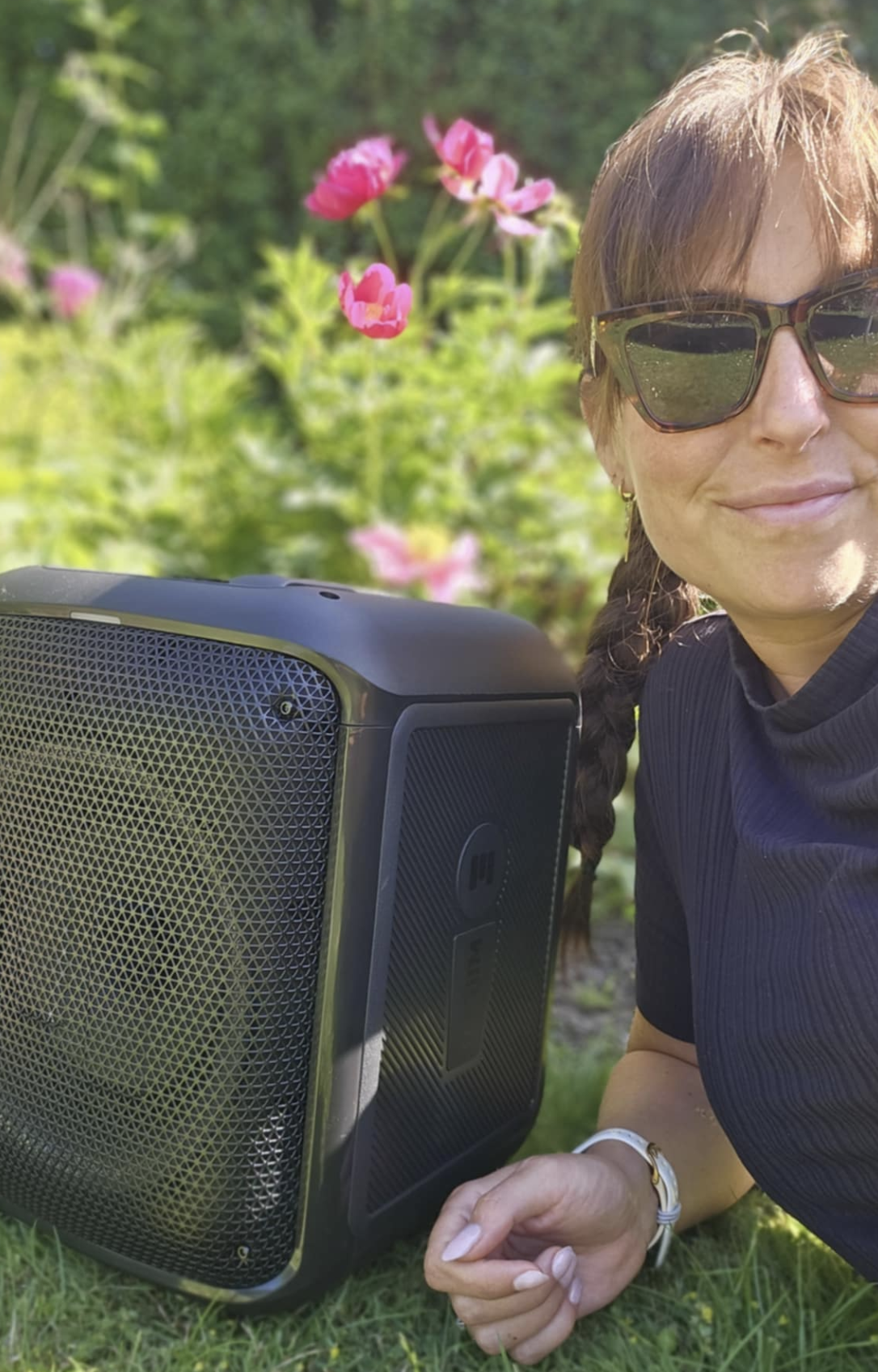 Vi har testet højtaleren i en lille måneds tid, og vi er virkelig blevet glade for den herhjemme, vi bruger den både inde som ude. Den giver en god lyd og vi tager den derfor ofte med på tur, ud på terrassen eller hen til trampolinen.