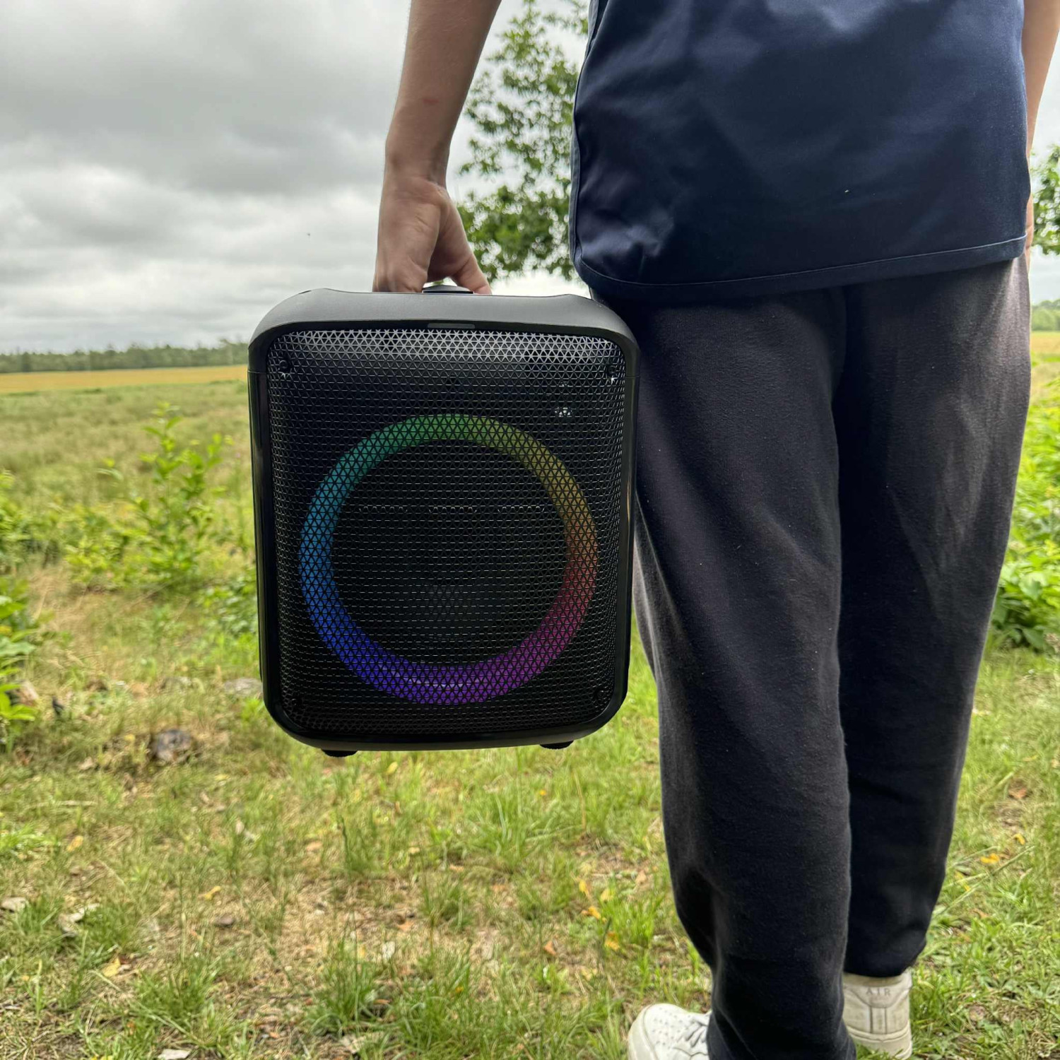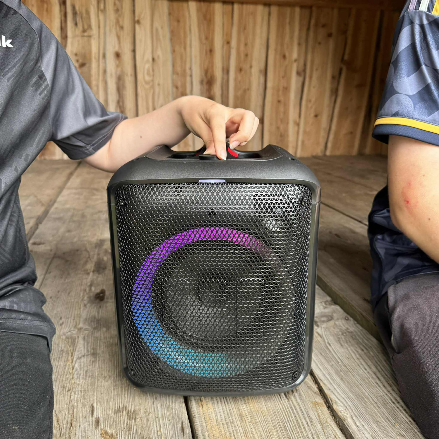 Lyden i højtalerne er rigtig god, og der er indbygget lys, der er med til at give en festlig stemning.