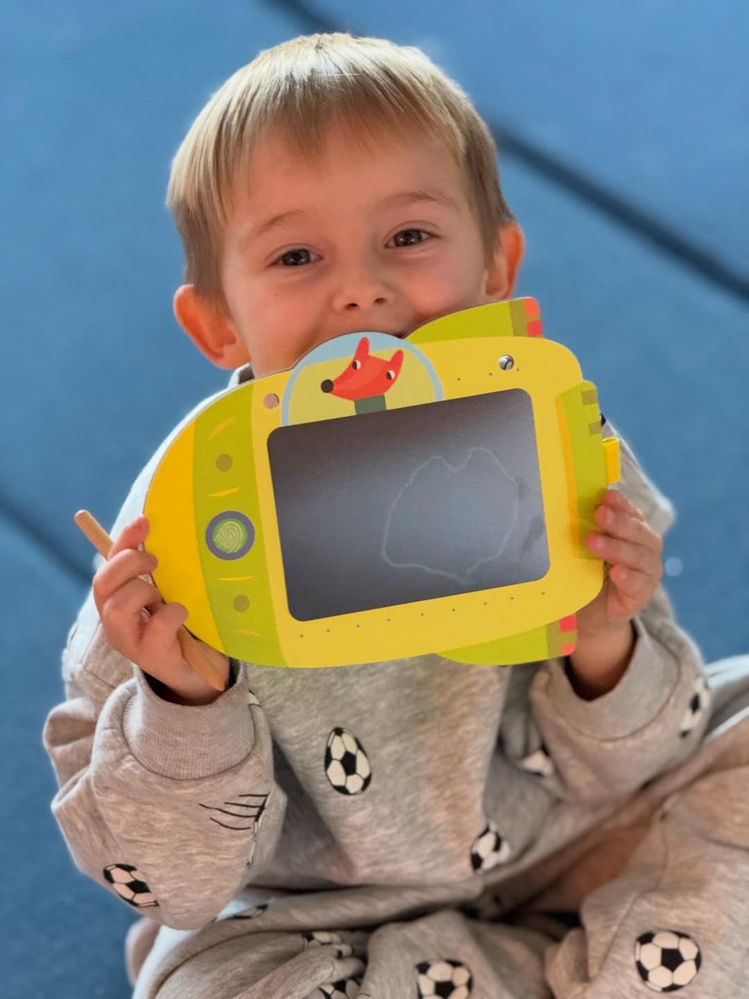 Tristan øver sig ihærdigt på at skrive sit navn og tavletavlen som han tester i samarbejde med @avenir_scandinavia, @andemorsverden og @testfamilien.dk er perfekt til det formål 👌🏼