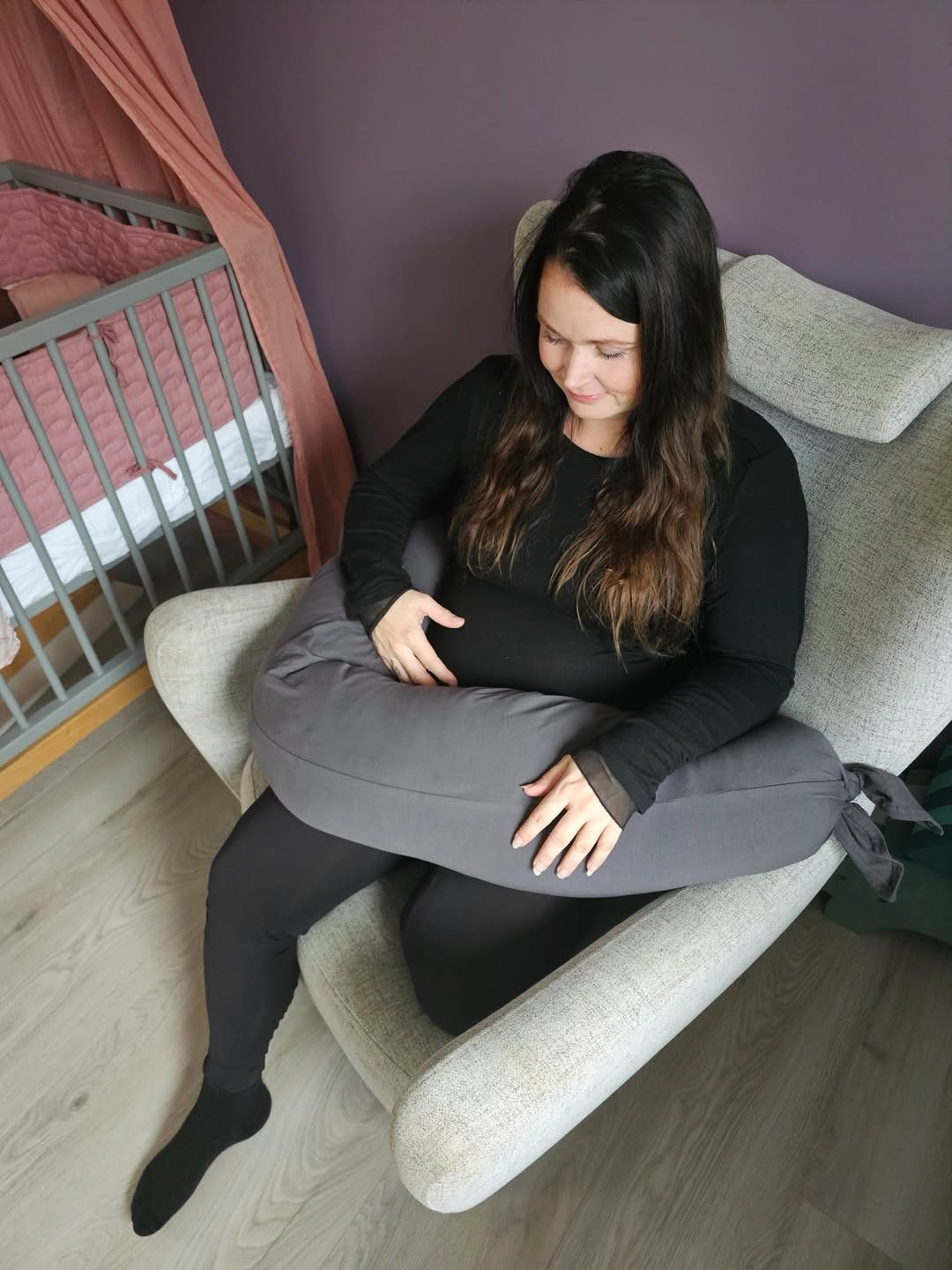 En blød og støttende pude, der giver ekstra komfort og aflastning under graviditeten – både til hvile og søvn.