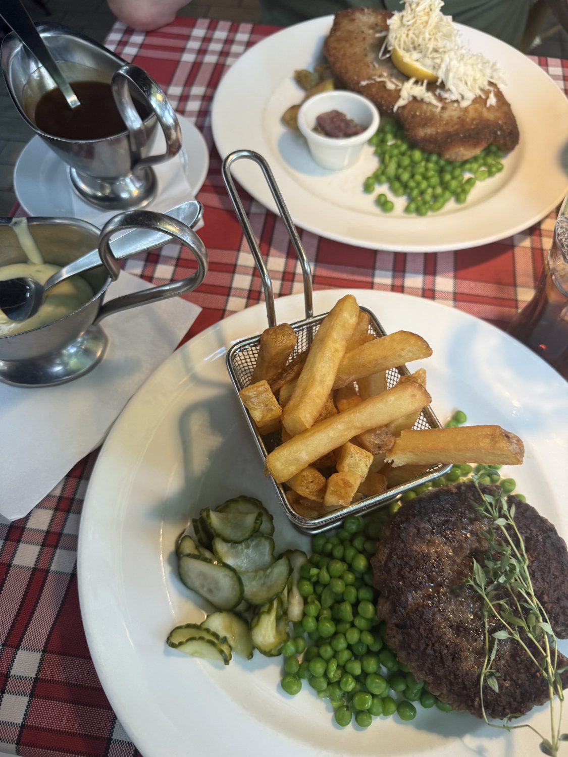 Efter første forestilling havde vi en skøn pause, hvor vi spiste middag på Grøften. Det er næsten en attraktion i sig selv. Her nød vi klassiske danske retter, mens vi lige fordøjede indtrykkene fra Klods-Hans.